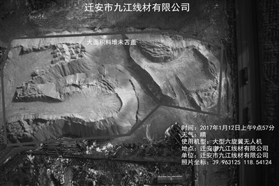 查閱唐山市無(wú)人機(jī)飛行紀(jì)錄,大型鋼鐵企業(yè)內(nèi)部環(huán)境問(wèn)題占了相當(dāng)大的比例,比如古冶區(qū)春興特鋼有10余處料堆未苫蓋(煤、沙土)、存在10余處污水池;遷安 市鑫達(dá)鋼鐵有10余處料堆未苫蓋(煤、沙土)、存在4處污水池;遷西縣津西鋼鐵有10余處料堆未苫蓋(煤、沙土、灰),存在兩處污水池……
