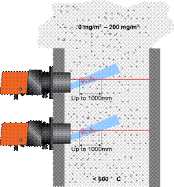 單側(cè)安裝適用于電廠中低濃度粉塵測量,特別適用于超低量程(最低0-5mg/m3),可以實現(xiàn)零點參比測試和測量探頭上鏡片集灰?guī)淼恼`差修正;性價比高 |